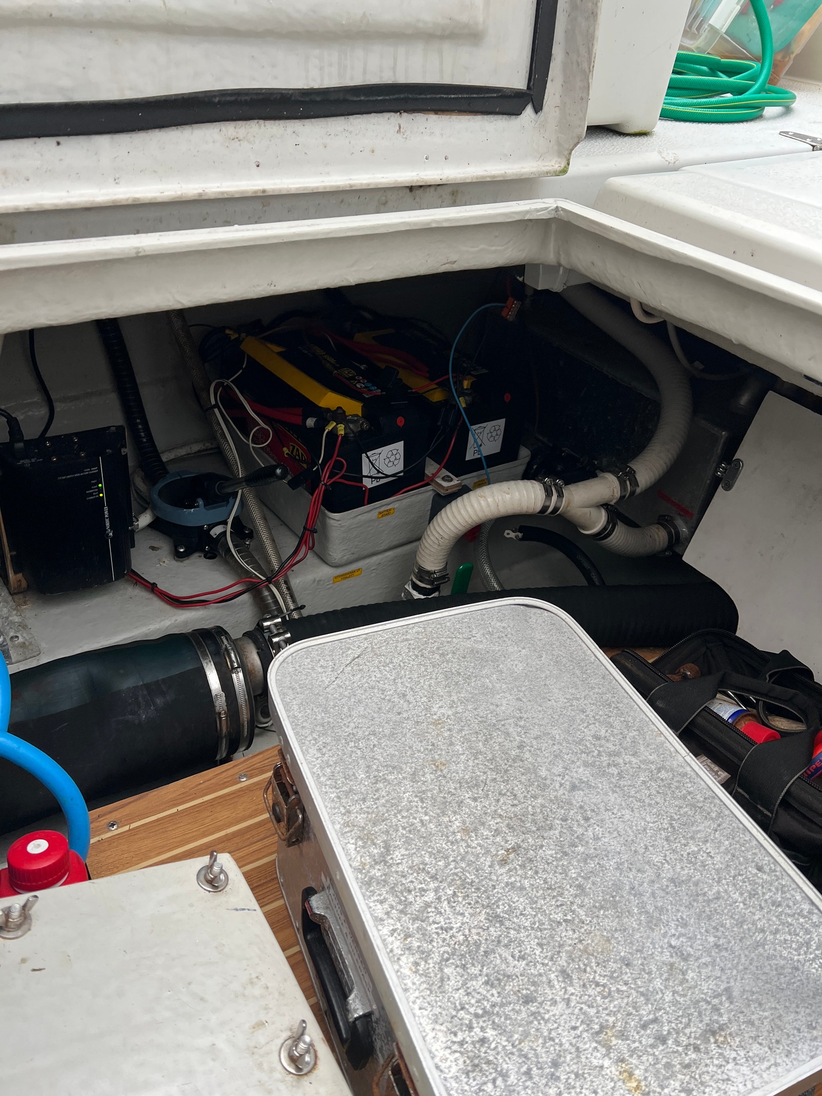 · Sjøvannspumpe med slange på dekk
