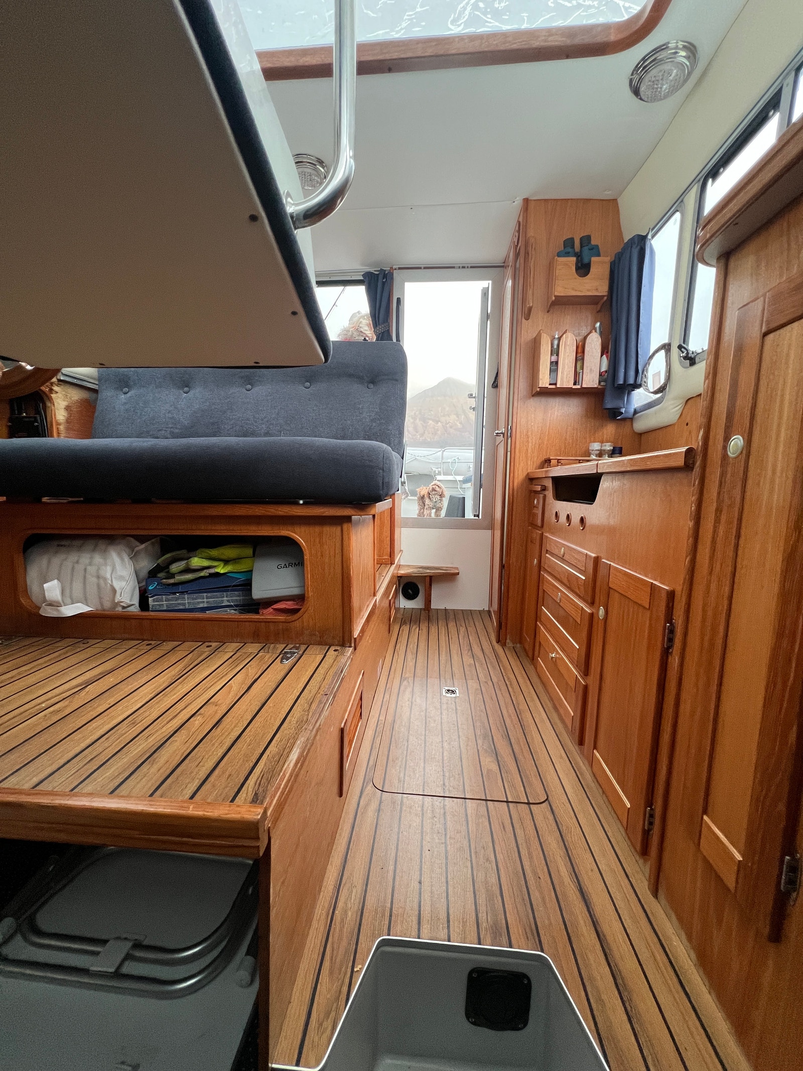 · Benk med oppbevaring og pute på dekk