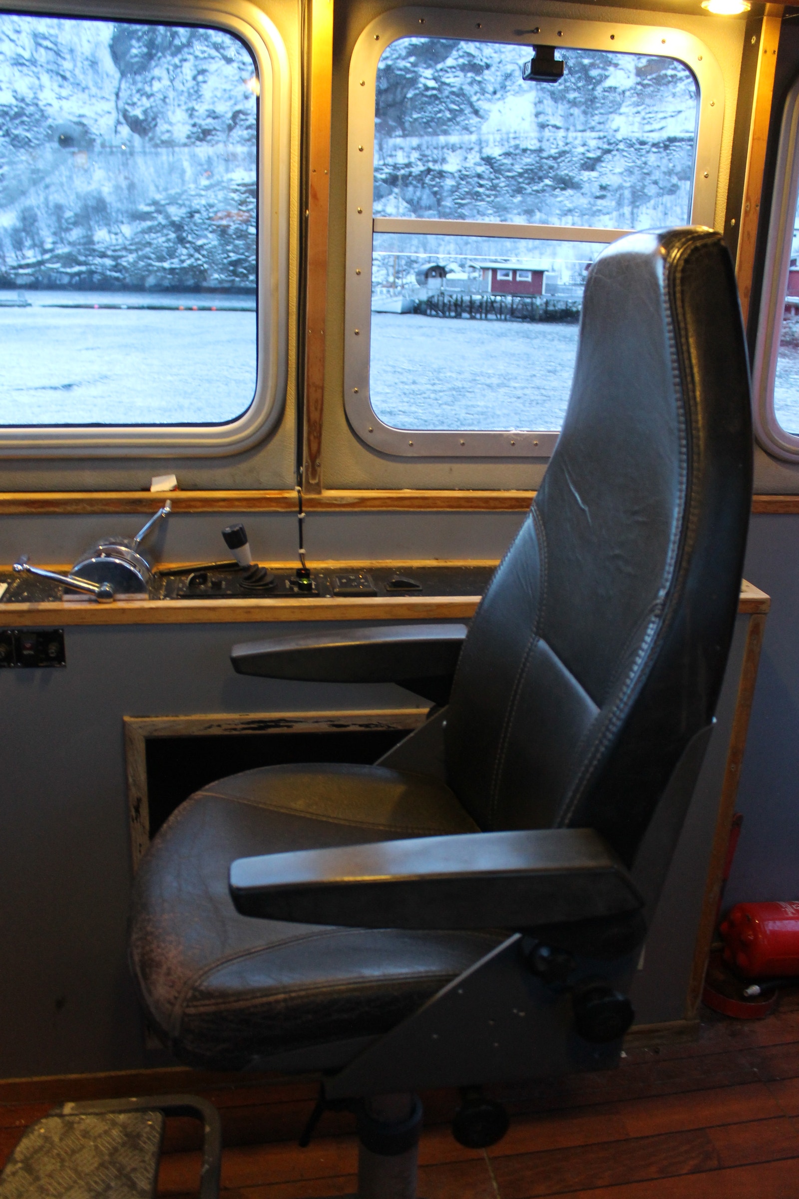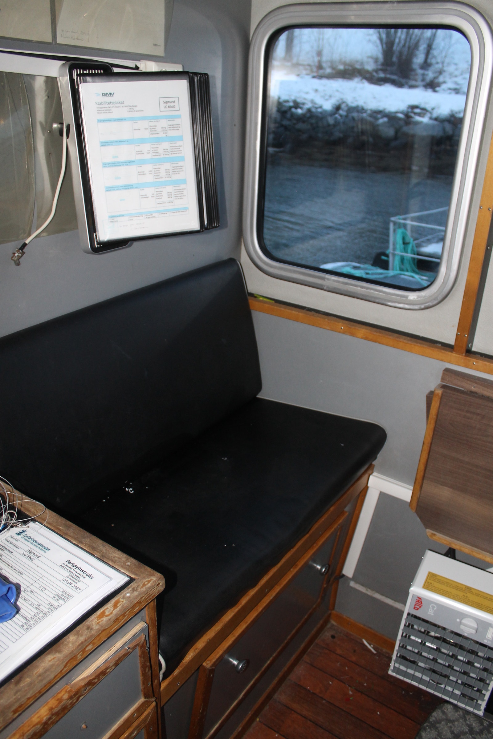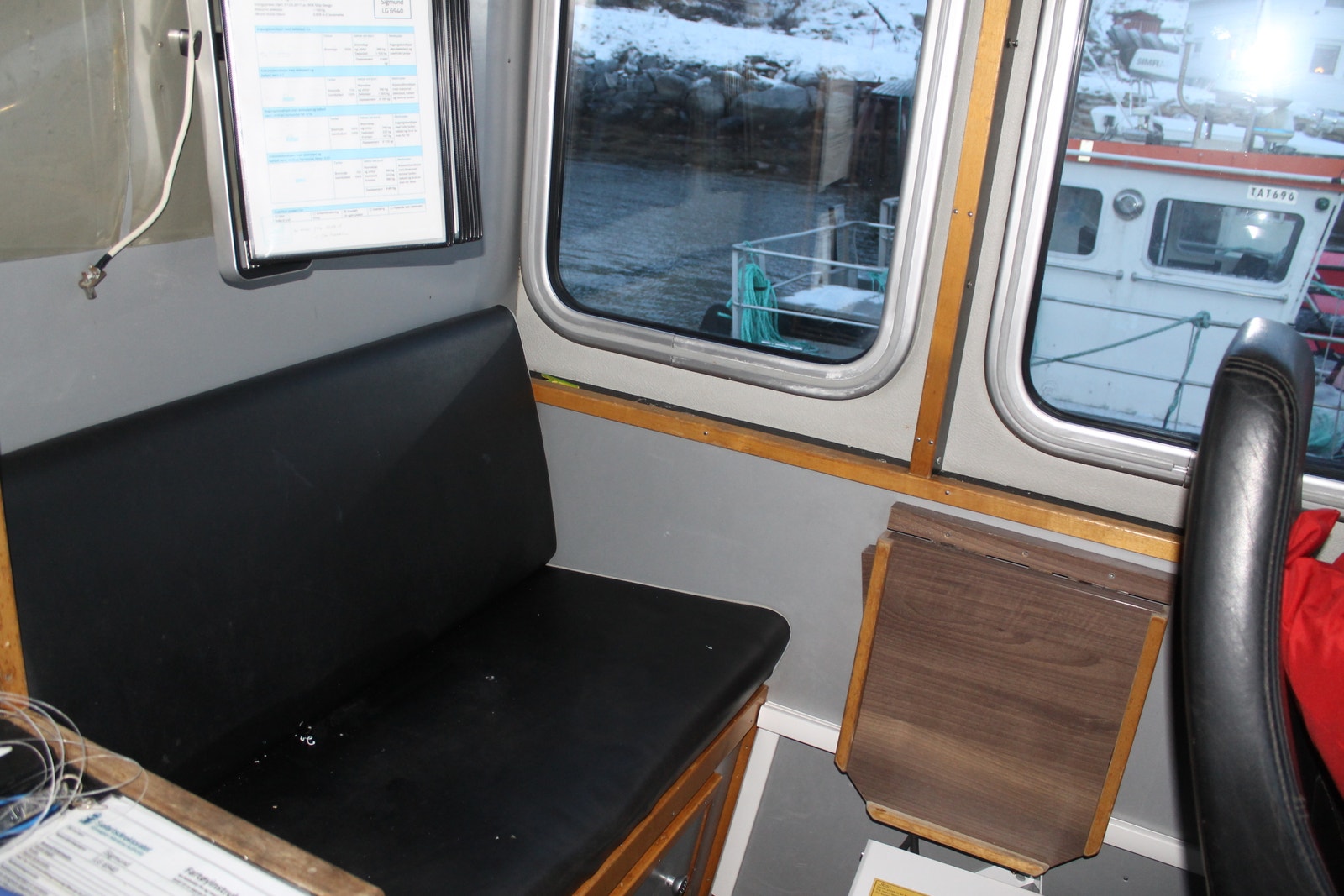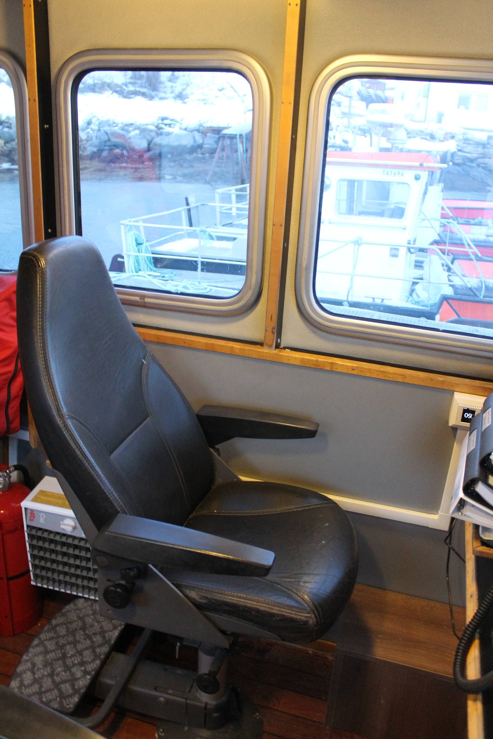 2 skipperstoler forut og benk akter, alle sitteplasser i fartsretning