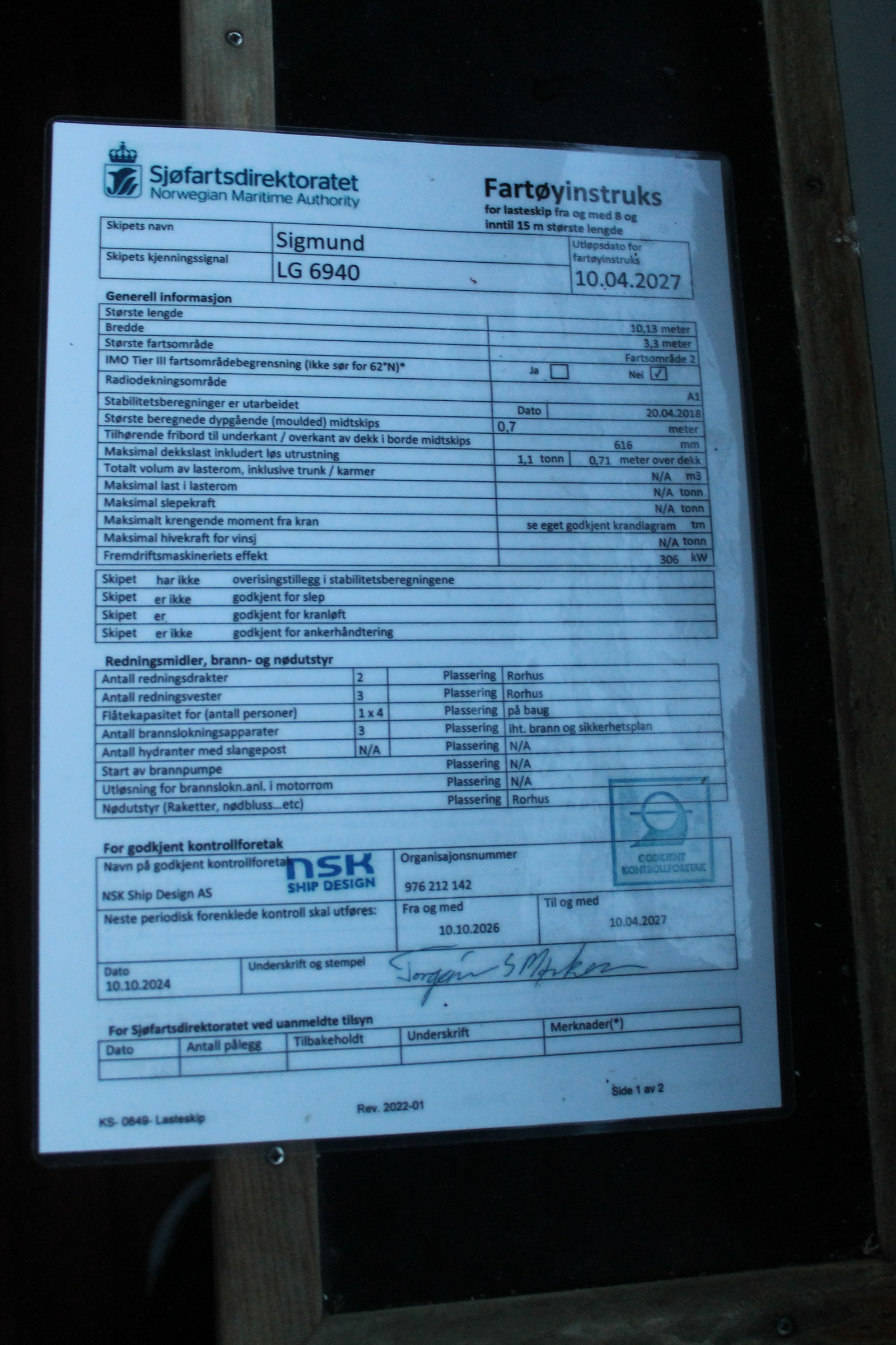 Fartøyinstruks for fartsområde 2, gyldig til 10.04.2027