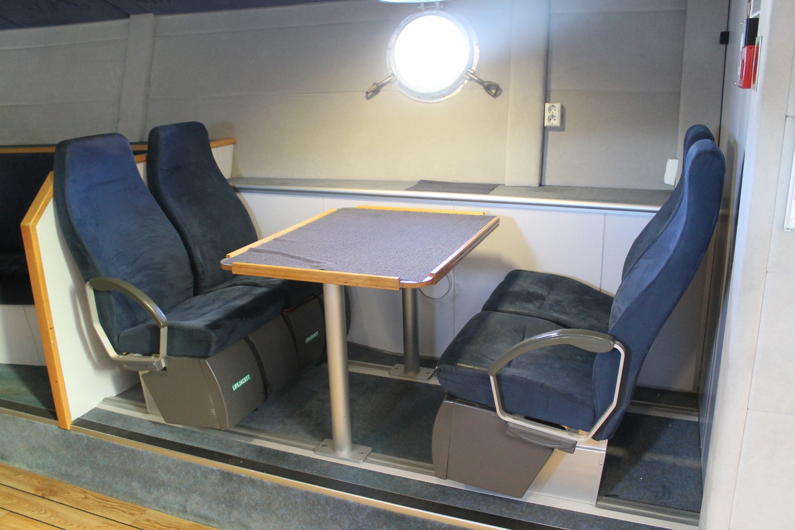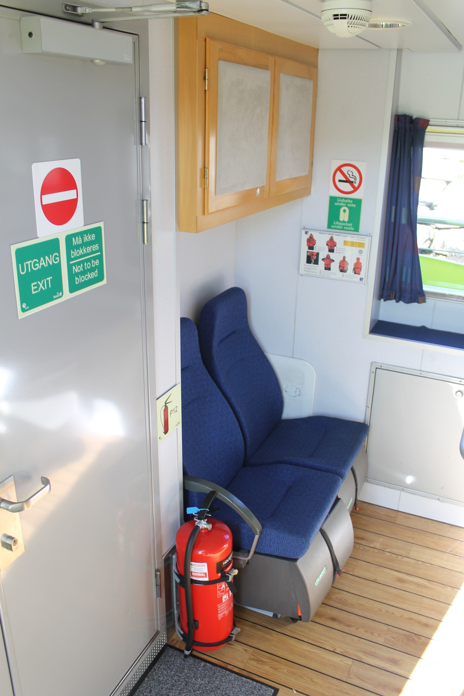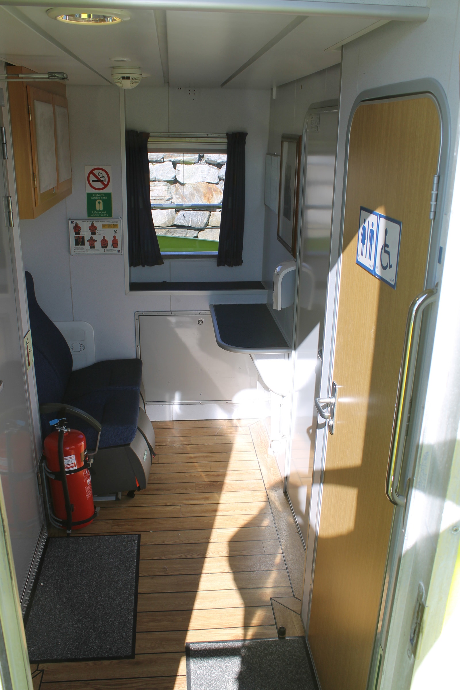 Rorhus har alt utstyr og har fire Recarostoler i fartsretning med demping og sikkerhetsseler