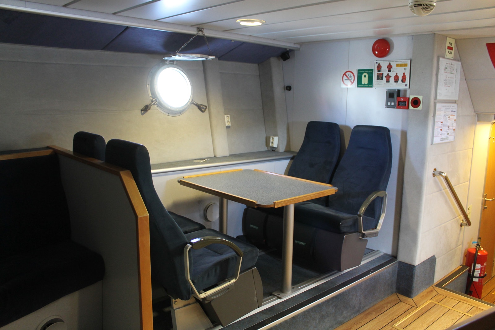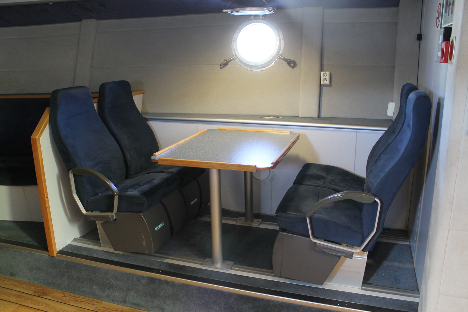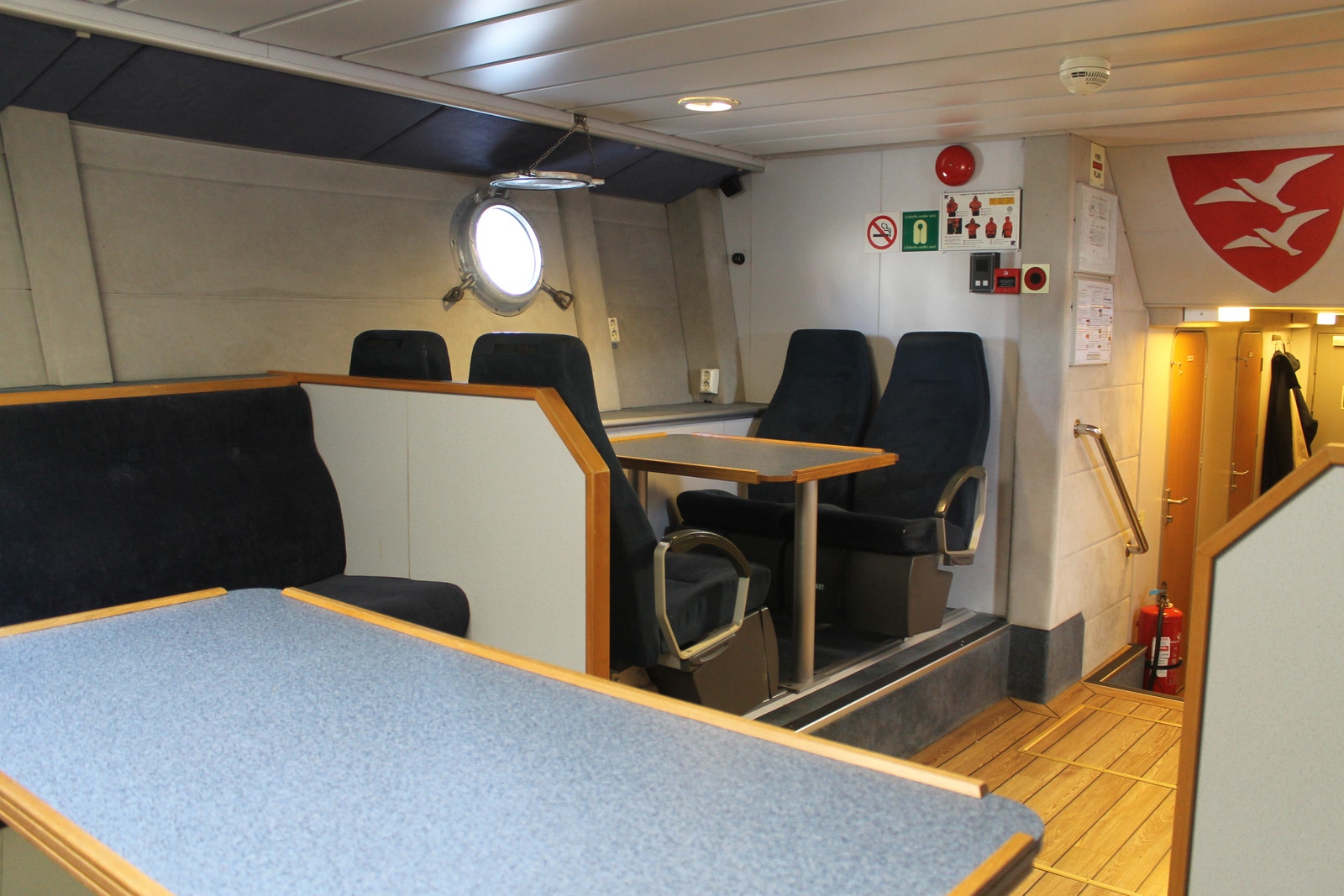 Rorhus har alt utstyr og har fire Recarostoler i fartsretning med demping og sikkerhetsseler