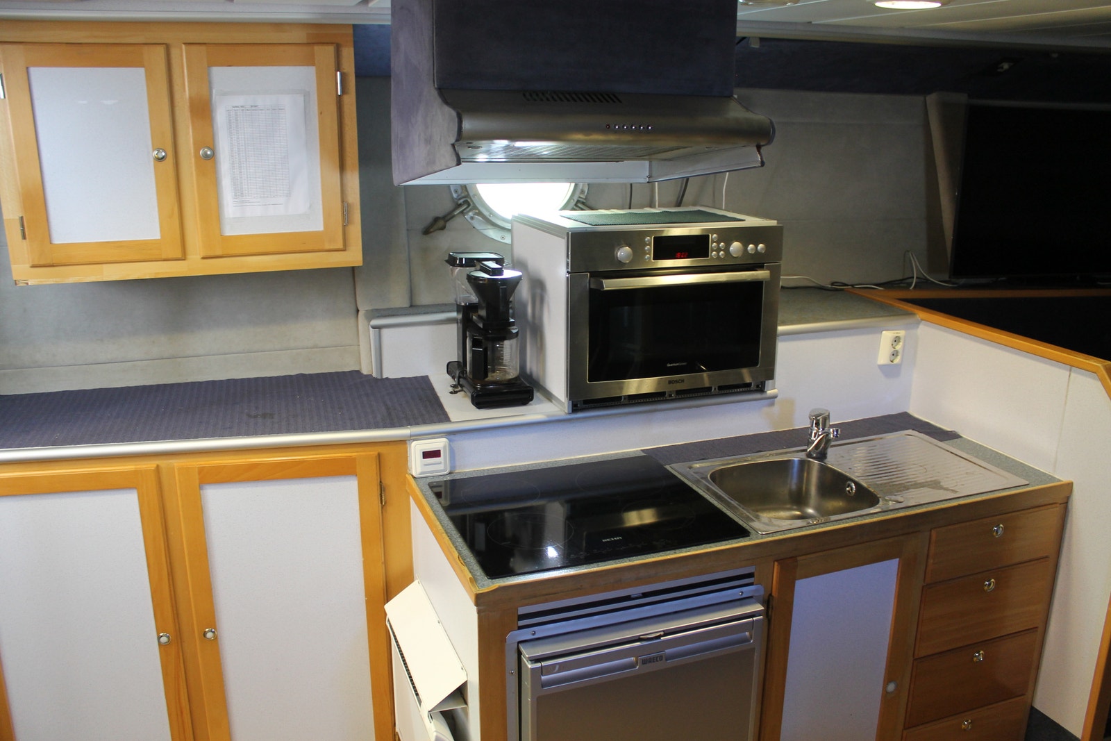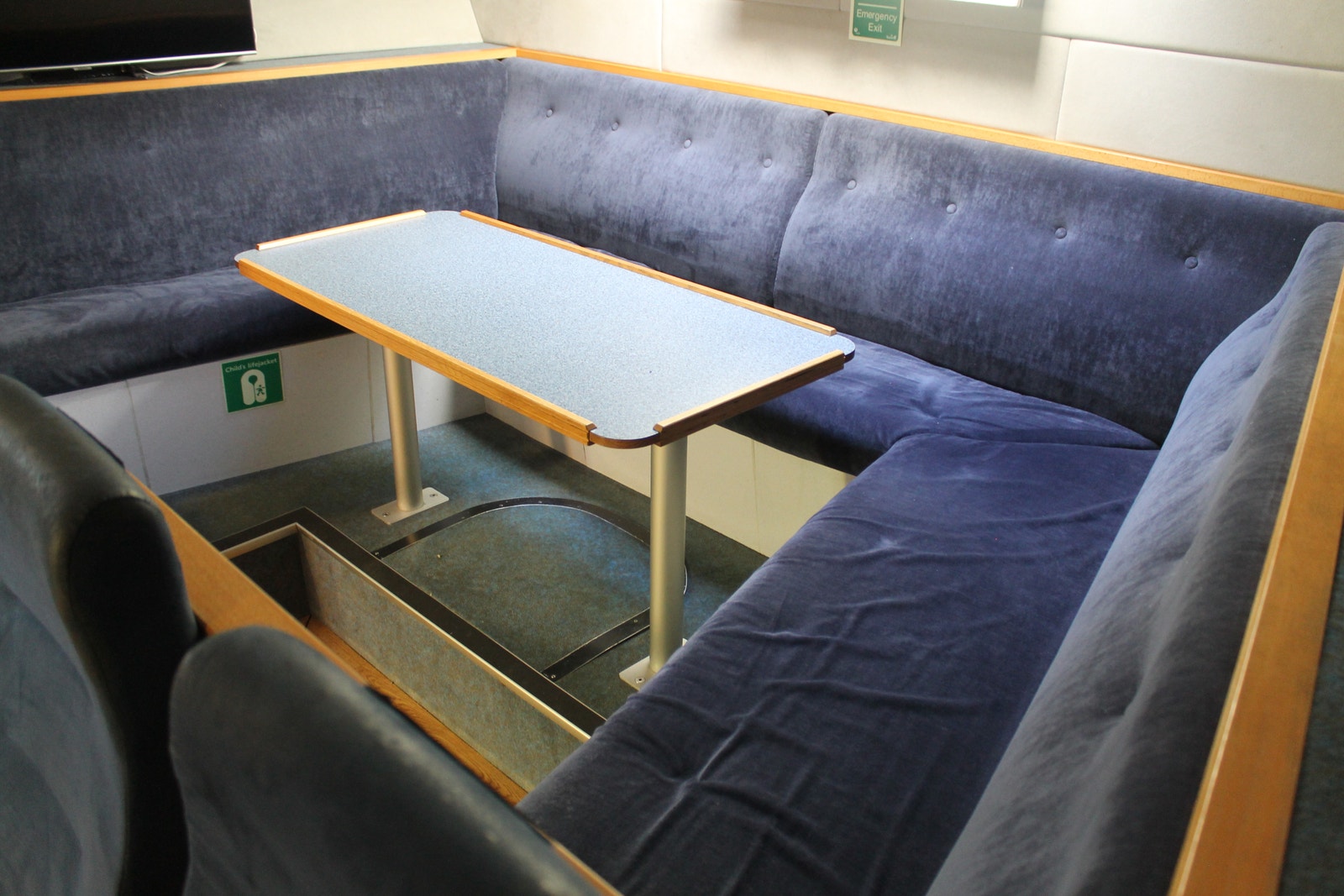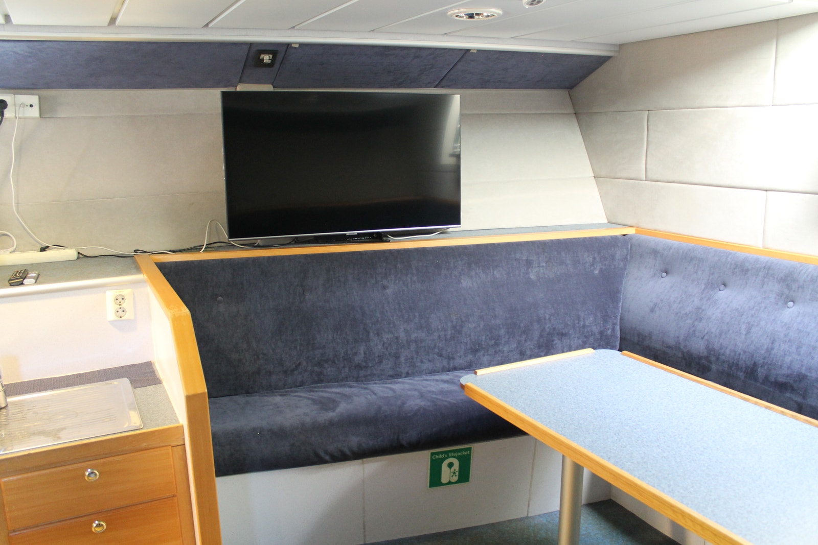 Romslig messe og godt utstyrt bysse. Ca 10 sitteplasser i messa