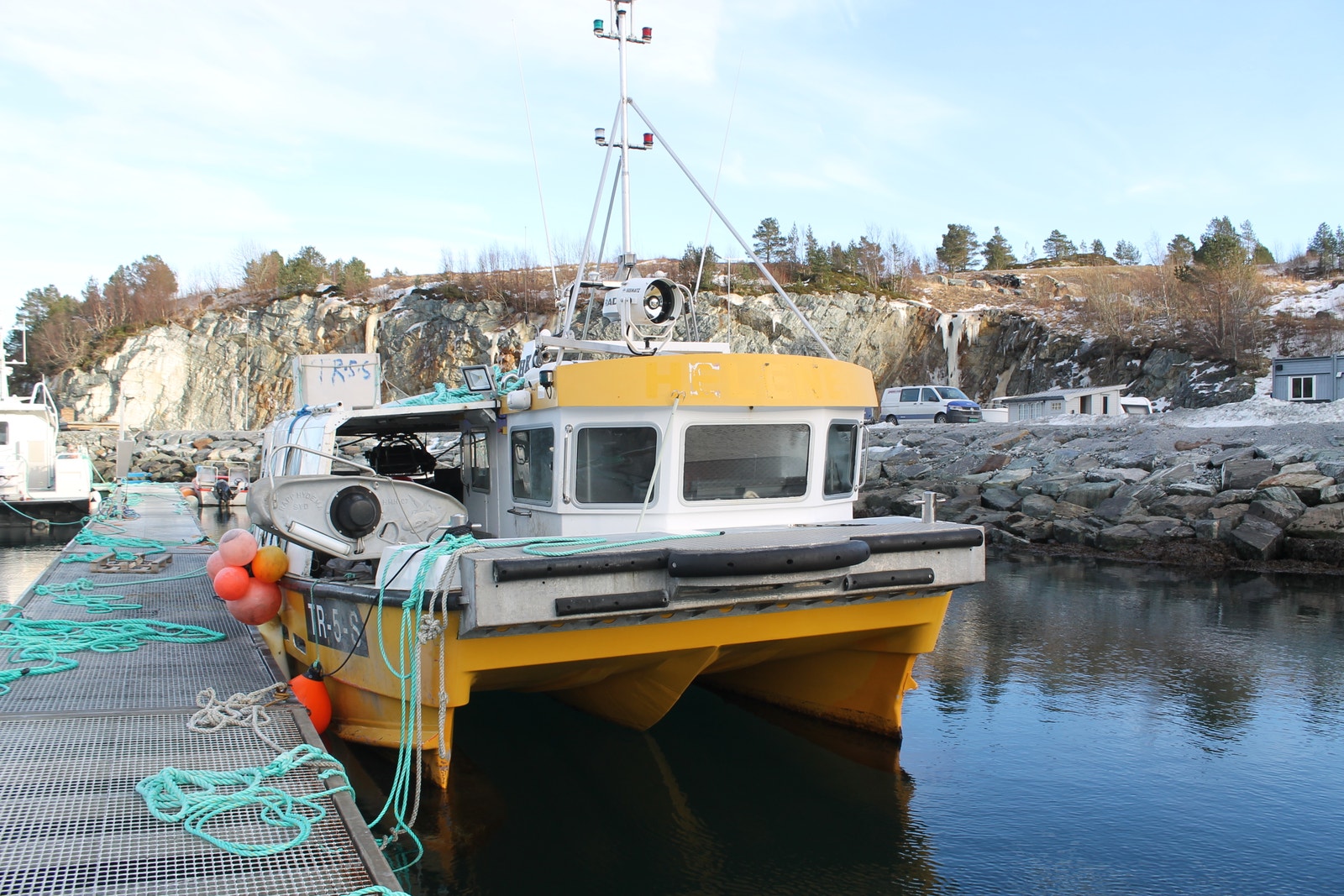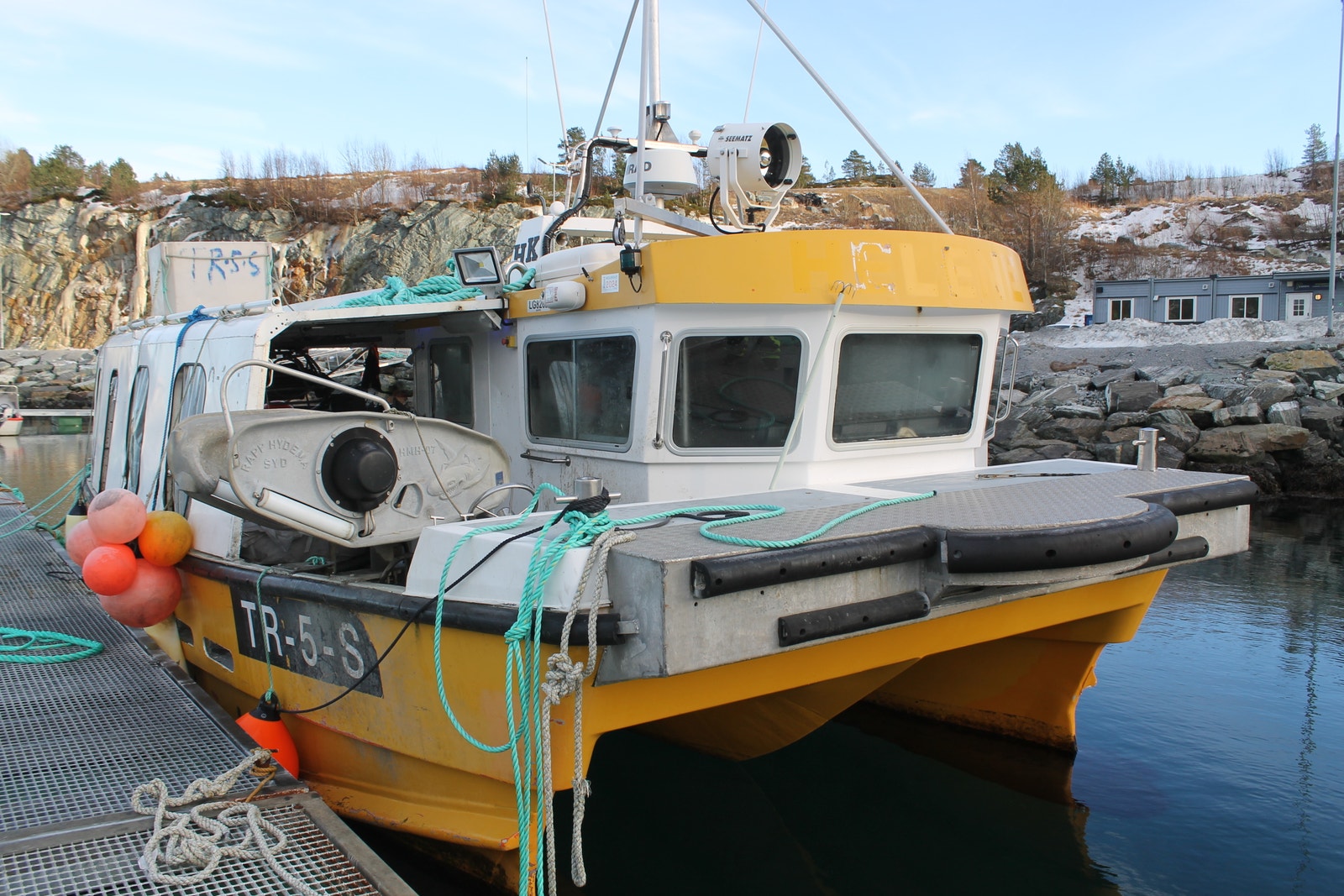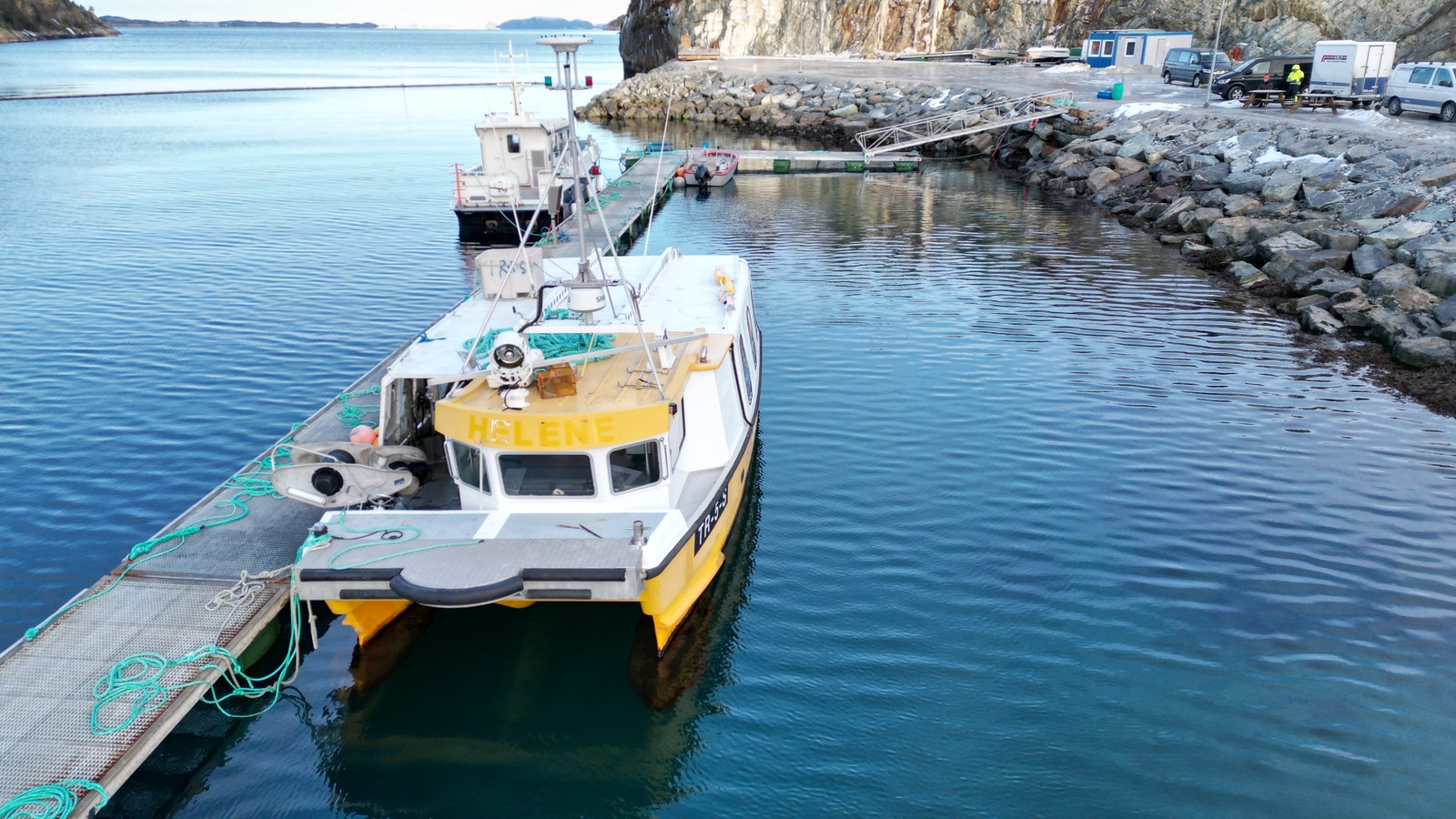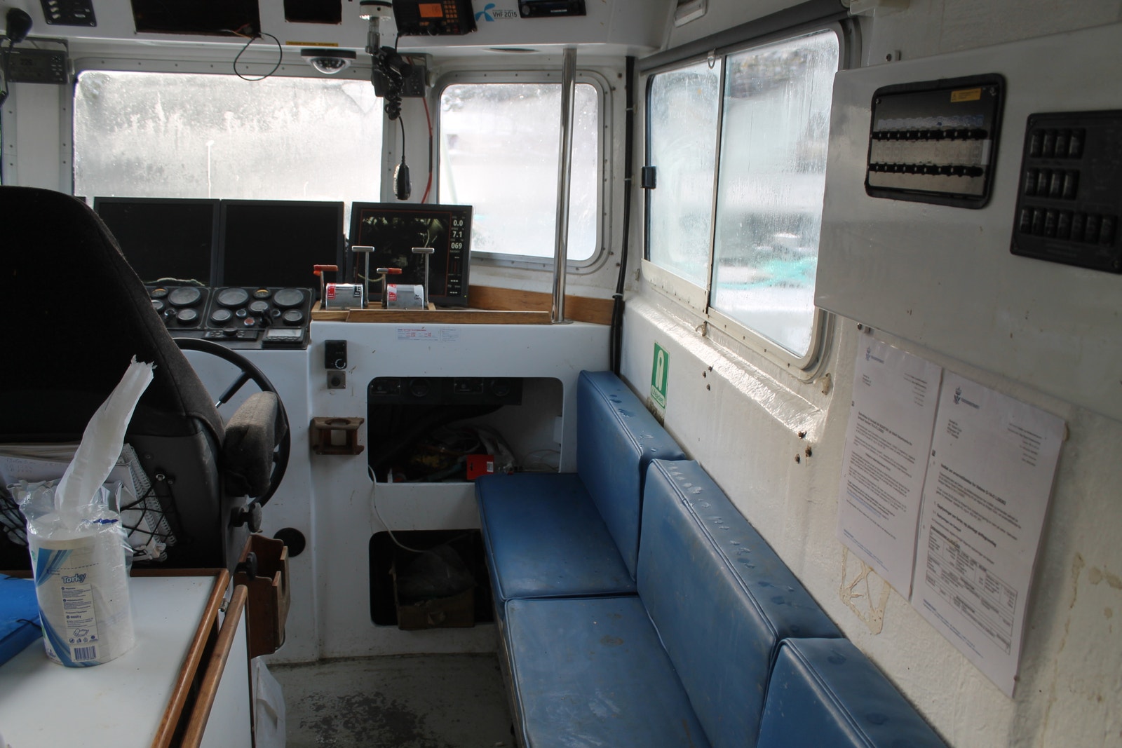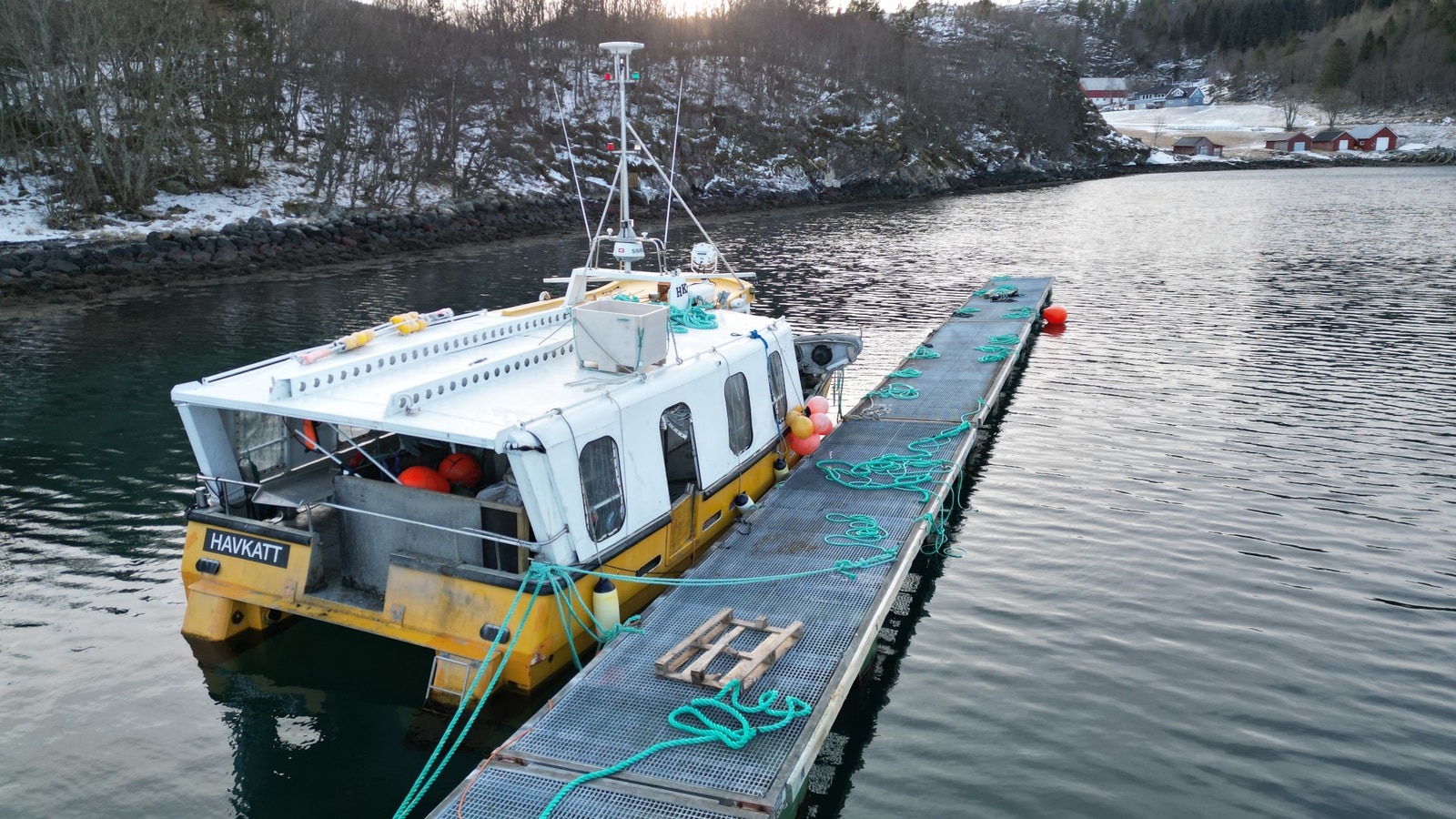Katamaran med Fartøyinstruks for Fjordfiske og Kystfiske gyldige til 21.03.2029.